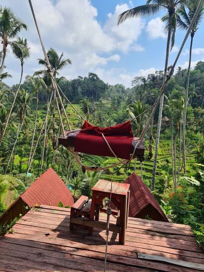 Riesenschaukeln, zu denen du gleichzeitig Wallekleider mieten kannst um dich mit wehender Schleppe fotografisch in Szene zu setzen.