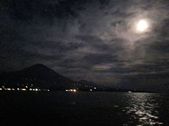 Es ist noch dunkel, aber der Mond schein, durch den Wolken noch verhangen.
