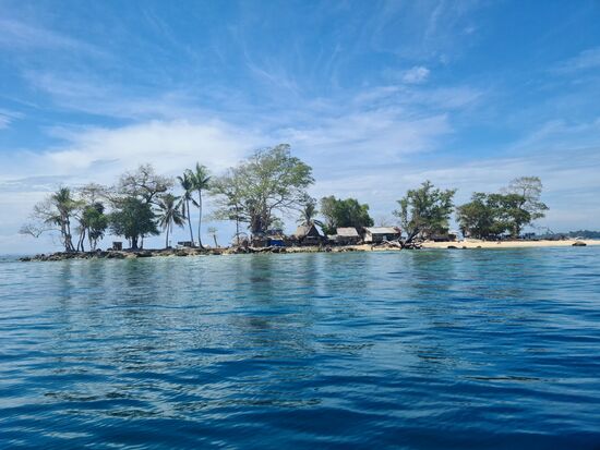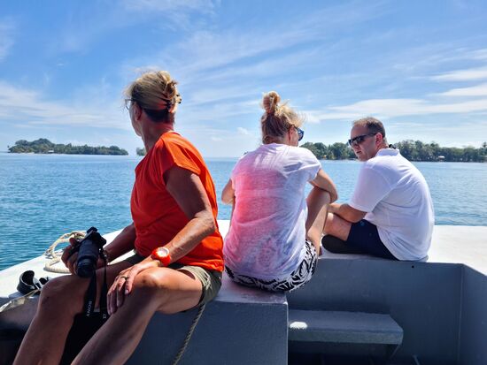 Für den Morgen in Madang ist eine Rundfahrt mit dem Boot durch den Hafen organisiert. Der Hafen nicht sehr groß und wir schippern dann auf ein paar kleine Inselchen zu.
