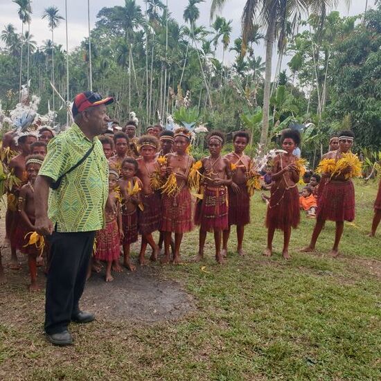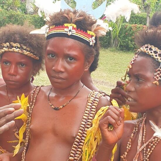 Wir fahren in ein Dorf ausserhalb. Der Dorfchef ist besonders engagiert, den Jungen und Mädchen die Kultur ihres Stammes zu vermitteln.