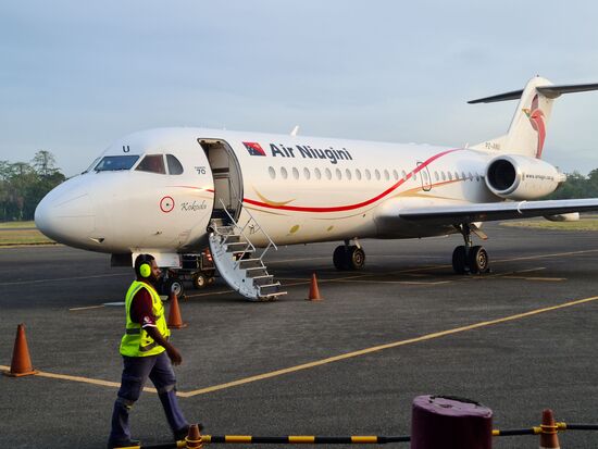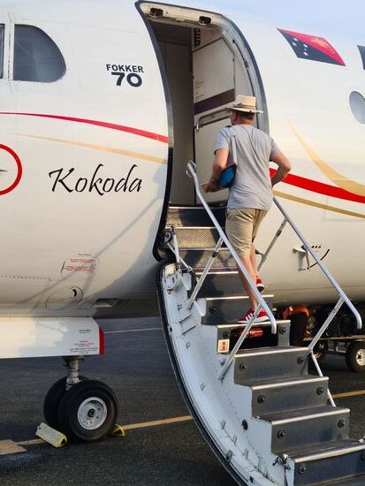 Jedes Mal bangen, ob die Maschine kommt und der Flug überhaupt stattfindet. Irgendwann ist die Maschine dann aber da und wir fliegen nach Port Moresby.