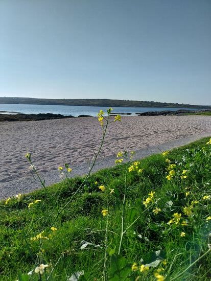 Wir hatten die Nacht im Aron-View-B&B (120,-€ mit leckerem Breakfast) in Spiddal verbracht, alles sehr sauber, schönes, großes Zimmer in einem geräumigen Einfamilienhaus mit netter Wirtin. Entspannt radeln wir los- heute reicht der Akku so der Gedanke- nur gut 30 km. Es macht Spaß bei Bergen auf volle Leistung des E- Motors zu stellen ohne Sorgen. Flott kommen wir voran, halten trotzdem überall an, wo es schön ist. Esel werden gestreichelt, der überschaubare Hafen in Roosaveel angeschaut. Wir biegen ab auf eine Halbinsel Richtung Carraroe. Endlich sind die Straßen so wie wir uns das vorgestellt haben: zwar schmal, aber kaum ein Auto- absolute Idylle mit immer wiederkehrenden, tollen Ausblicken auf das Meer. Schon Mittags erreichen wir unsere neue Unterkunft O' Domhnail Guesthouse (128,-) in Ligh to Sigh. Wir dürfen das Gepäck gleich abstellen. Das hübsche Zimmer ist noch nicht fertig. Gleich geht's auf zum herrlichen Strand- Coral Beach, wo wir den Tag mit Baden und Faulenzen genießen.