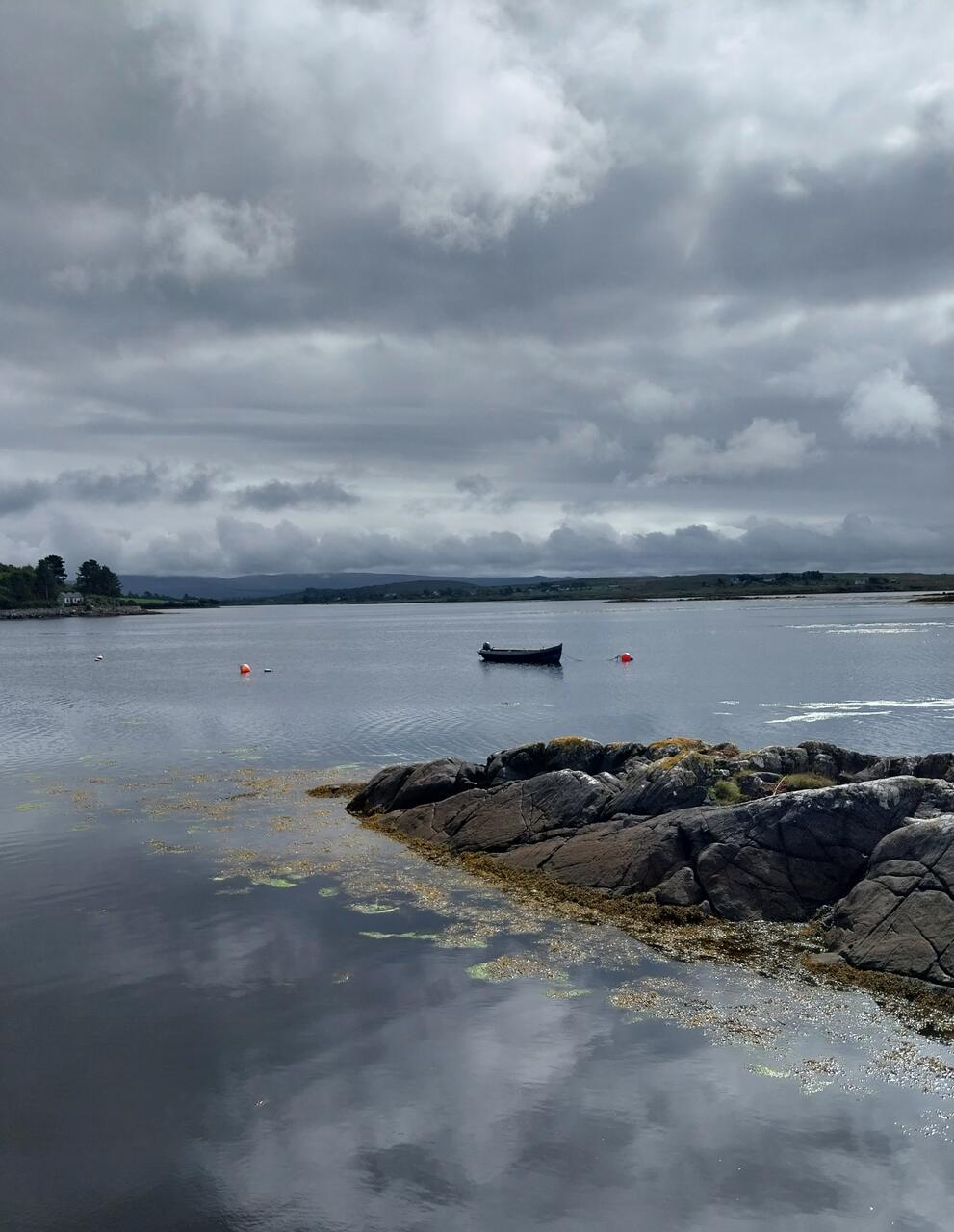 Irgendwann hört der Regen auf, wir machen ein schönes Picknick am See, es gab tatsächlich einmal Picknickbänke- hier bei Cashel. Heute kommen wir trotz der vorhandenen vielen Berge gut voran, da kaum Straßenverkehr uns beeinträchtigt. Es ist Fahrradfahren, so wie man es sich erträumt. Stille umgibt uns, sehr entspannend und erholsam. Die über 80 km vergehen wie im Fluge. Nach kurzem Einkaufsstopp in Clifden sind die letzten 12 km Richtung Letterfrack trotz Berge auch noch schnell bewältigt. Zur Teatime werden wir im B&B Eriu Lodge sehr herzlich von der Wirtin mit Kuchen zum Tee empfangen, im Frühstückszimmer wie auch in unserem Raum dominiert die Farbe rosa, überall Röschenmotiv. Es riecht quasi sogar rosa (wohl Wildrosenduft). Die Einrichtung ist so aus der Zeit gefallen, dass sie bereits wieder als "Retrolook" interessant ist. Das Frühstück am nächsten Morgen hervorragend mit leckerem Lachs (84,- € B&B for two).