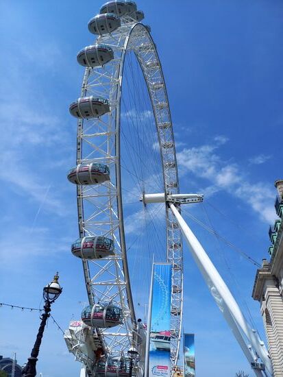 Mein Sohn hatte über England etwas in der Schule gelernt und wußte über London Eye bescheid. Ich dachte eigentlich, naja - auf so ein Riesenrad muß ich nicht unbedingt, aber da mein Sohn sagte, er will unbedingt dahin, kaufte Tom uns Tickets. Er entschied sich für die Champagner-Experience - man zahlt ein Bisschen mehr und bekommt Champagner. Als wir ankamen und schon in der Schlange gewartet hatten, sagte einer der Mitarbeiter, dass wir noch 45 Minuten auf die nächste Champagner-Experience warten müssten, oder wir könnten anstattdessen eine Kapsel im London-Eye ganz für uns alleine haben. Das war mal ein Angebot! Das kostet sonst wohl so 600 Pfund - auf jeden Fall krass viel! Wir sind dann in unserer Kapsel alleine zu Dritt einmal herum gefahren. Tom hatte Speaker dabei und wir hörten Nick Drake bei der wahnsinnigen Aussicht. Alle drei waren wir total begeistert. Das kann man echt nicht mit einem gewöhnlichen Riesenrad vergleichen (: Was für eine tolle Erfahrung!
