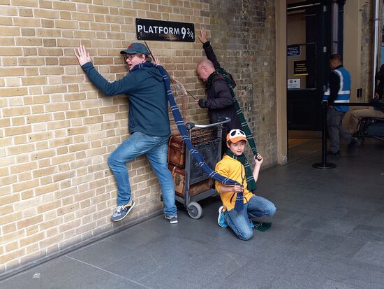 Mein Sohn, der auch auf dieser Reise wieder Jongliervideos an interessanten Orten machen wollte stellte sich geduldig an, bis wir an die Reihe kamen, ein Foto mit dem Gepäckwagen von Harry Potte zu machen. Als er an der Reihe war, fragten wir die Mitarbeiter, ob er anstatt dessen davor jonglieren dürfe. Ich filmte ihn und die wartende Menge von Leuten, die auch noch ein Foto wollten, waren begeistert. So viel Applaus hatte er noch nie bekommen!