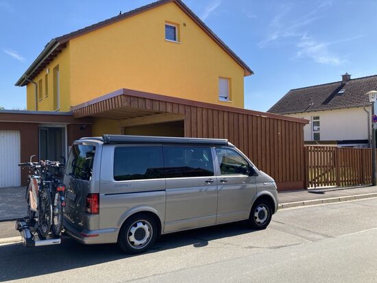 Na gut, früher hatten wir auf dem Motorrad zwei seitliche Koffer, einen kleinen Tankrucksack und hinten drauf war die „Wohnung“, also das Zelt. So ging es ja auch. Damit verglichen sind die Platzverhältnisse in unserem Bulli der reinste Luxus.