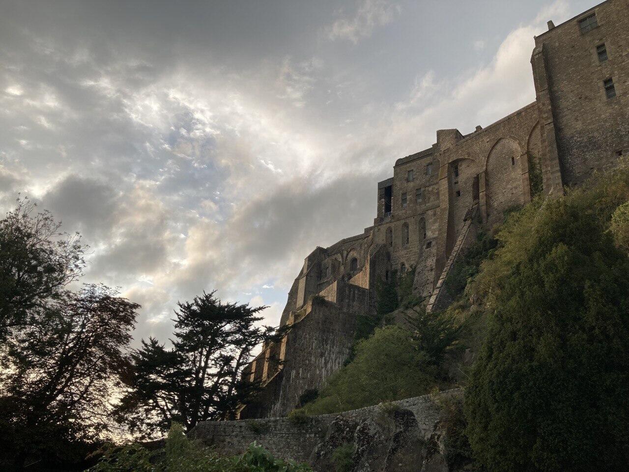 Gleich nach dem Airborne-Museum geht’s weiter. Unser nächstes Ziel ist Le Mont Saint Michel. Das ist ein Felsen im Meer, auf welchem sich ein Kloster und eine kleine Stadt befinden. Wir stehen gratis auf dem Parkplatz eines Straßenverkaufs von regionalen Produkten, dafür kaufen wir dort ein. Unser Stellplatz bietet eine wunderbare Aussicht auf den Felsen im Meer.