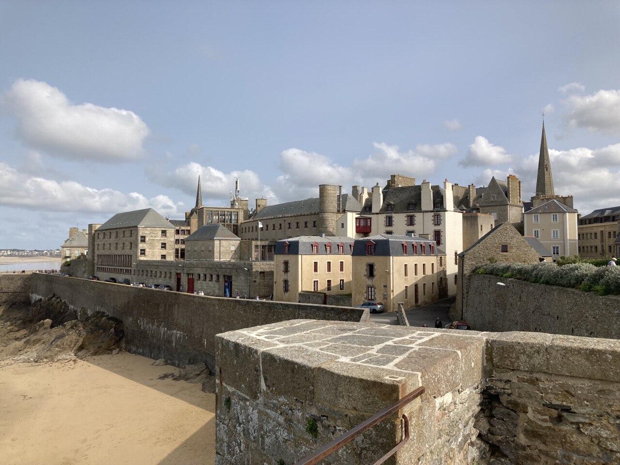 Etwa 50 km entfernt liegt San Malo. Es ist die in Frankreich von Touristen meist besuchte Stadt. Die Häuser der Altstadt sind mit grau-braunem Granit gebaut. Auf der breiten Stadtmauer umrunden wir die Altstadt. Wir haben Ausblicke in die Stadt, auf den Hafen und die vorgelagerten Inseln mit den alten Festungen, welche die Stadt vor Angriffen von Seeseite schützten.