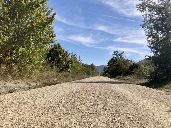 Ein schnurgerader Wanderweg führt an Puentedey vorbei. Wir fahren hier ein paar Kilometer mit den Rädern und 'erfahren' bei Brizuela die Antwort auf unsere Frage, warum der Weg so gerade durch die Landschaft führt.