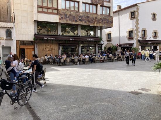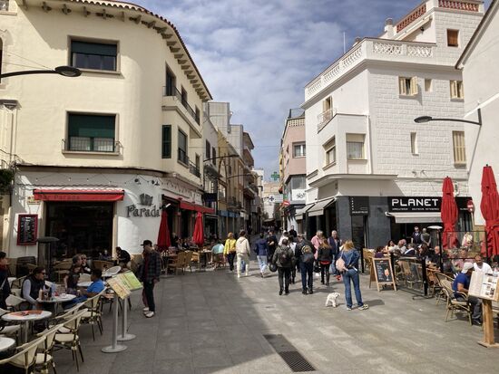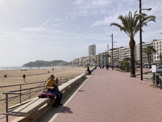 Der Strand ist schön aber gleich hinter der Promenade türmen sich Bettenburgen. Auf der Promenade und bei den Restaurants sind ein paar Straßenmusiker unterwegs. Im Sommer drängen sich in Lloret de Mar wahrscheinlich noch viel mehr Urlaubsgäste.