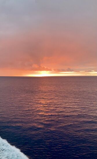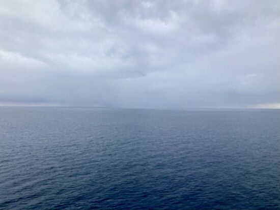 Alles in allem ist das Wetter etwas wechselhaft. Der Regen gegen Abend hat wieder Staub aus der Sahara abgeladen. Während Jutta schläft erlebe ich in der folgenden Nacht ein Gewitter, welches die Regenwolken von oben beleuchtet.