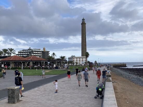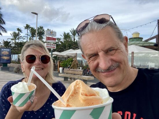 Nach dem obligatorischen Eis sind wir wieder fit für einen Spaziergang beim Faro Maspalomas, der Lagune La Charca und den Dünen.