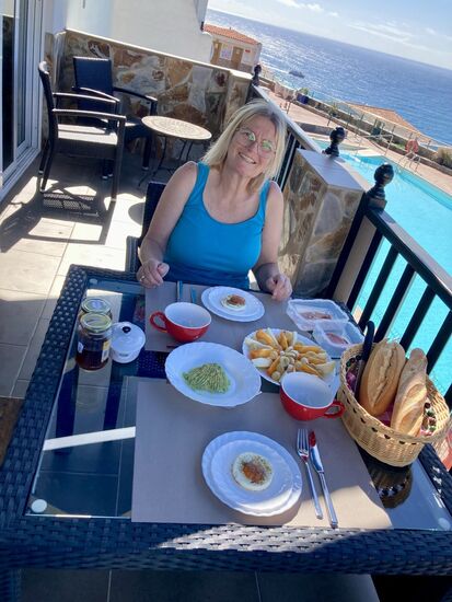 Nun geht es erst mal heim nach Arguineguin. Von hier aus wollen wir die anderen Inseln erkunden. Aber erst schlafen wir mal richtig aus. Richtige Betten sind manchmal auch ganz nett. Gegen 10:00 Uhr stehe ich auf und putze unseren total verstaubten Balkon und gehe anschließend Frühstück holen. Gegen Mittag hole ich Jutta aus den Federn. Es gibt ein leckeres Frühstück unter freiem Himmel auf dem Balkon.