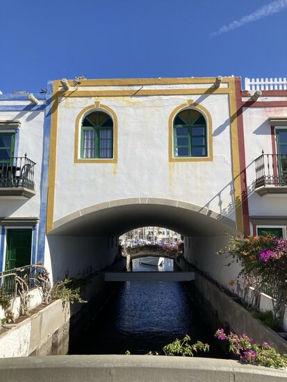 Puerto de Mogan ist der alte Fischerhafen der Bezirkshauptstadt Mogan. Die Ortschaft Puerto de Mogan selbst stammt aus den 80ern und ist ebenfalls sehr touristisch. Sie wird wegen der Kanäle und der kleinen Gassen der Touristensiedlung auch „klein Venedig“ genannt, wie so viele schöne, am Wasser gebaute Orte. Um den Charakter des Ortes zu erhalten, verbietet es die Gemeindeverwaltung, Häuser mit mehr als zwei Stockwerken zu bauen. Neben dem Fischerhafen gibt es noch einen Yachthafen mit allerlei schicken Yachten.