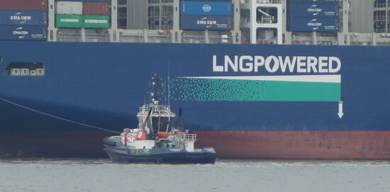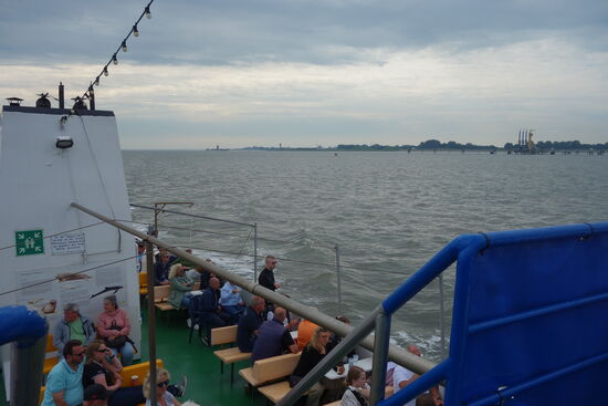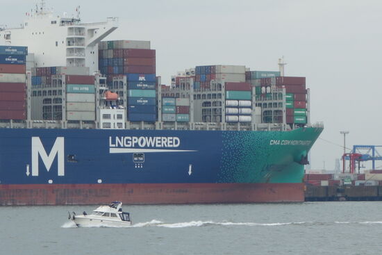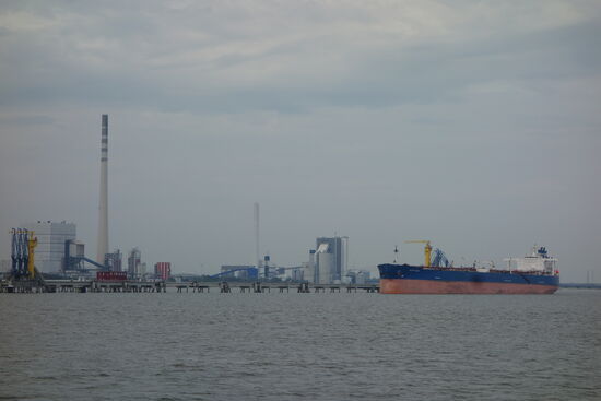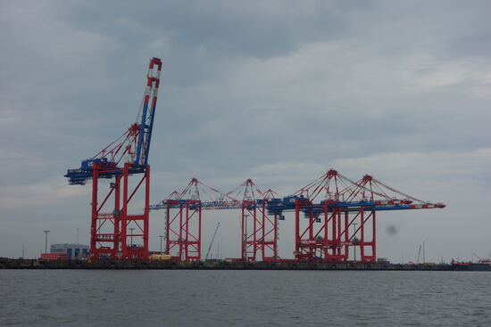 Die Fahrt geht zunächst in weiter Entfernung zum Ufer bis zu den Containerschiffen.