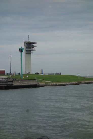 am Infocenter des Jade-Weser-Ports haben wir erfahren, dass zwei große Containerschiffe vor Ort sind.