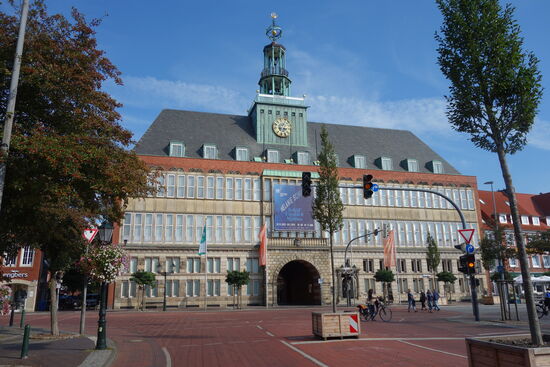Nach fast völliger Zerstörung durch die Luftangriffe auf Emden im Zweiten Weltkrieg wurde es in modernen Formen wiederaufgebaut, dabei wurden einige Elemente des Vorgängerbaus aufgegriffen. nach Auszug der Stadtverwaltung beherbergt der Bau das Ostfriesische Landesmuseum.