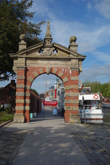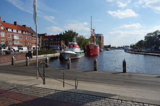 Am Ende der Hafenpromenade liegt das einzige Tor aus alter Zeit. In der ratsdelft sieht man das Museumsfeuerschiff 'Deutsche Bucht'