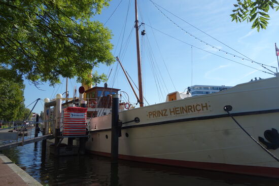 Auf dem Weg zum historischen Rathaus kommen wir am historischen Dampfschiff 'Prinz Heinrich ' von 1909 vorbei. Es handelt sich dabei um das ältestes Seebäder-Schiff und den ältesten Doppelschrauben Post- und Passagierdampfer Deutschlands.