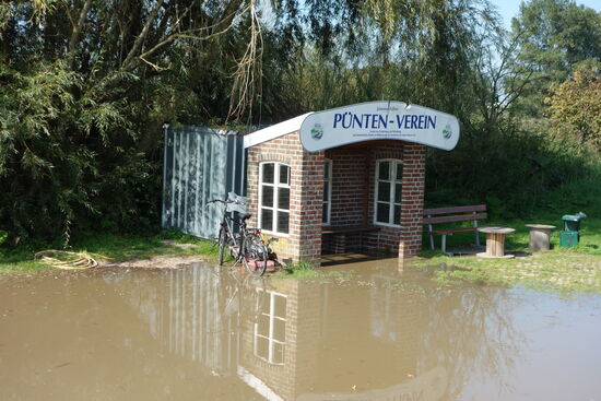 In der Nähe befindet sich - wir haben dies in einem Fernsehbericht gesehen - eine von Personen gezogene Fähre (Pünte)