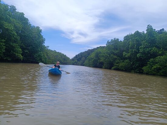 Wir haben uns zu einer Kayaktour hinreißen lassen. Die Kayaks, aus dem Ganzen als Plasteteil gegossen und sowas von unbequem...erst sind wir flußaufwärts gesäumt von Mangroven gepaddelt und später noch bis zum Meer. Keine Tour, die man gemacht haben muss.