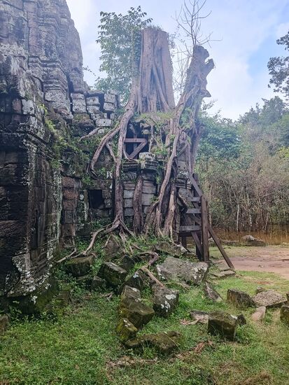 Der Hingucker an sich wartet ganz hinten. Anders als bei Ta Prohm hat man hier den Baum geköpft, der den Tempel, zu erwürgen scheint.