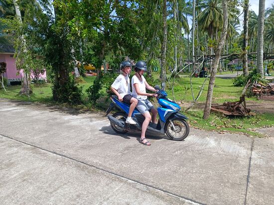 Simone hat eine kleine Mopedvergangenheit...für mich ist´s mit 60 erst das zweite mal überhaupt (das erste Mal war Myanmar)...aber wir wollen ja auch keine Rennen auf der Insel fahren.