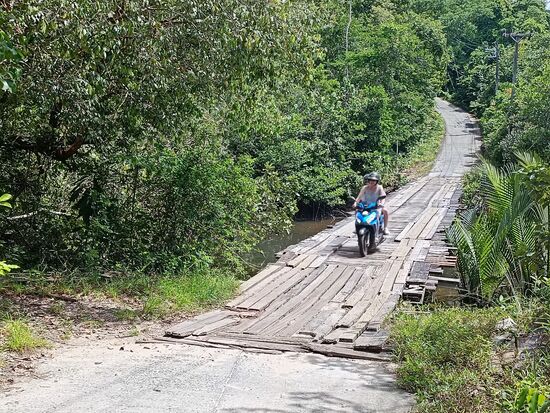 Die Straße Richtung Norden führt nur noch zu ein paar Resorts, der Norden ist sehr dünn besiedelt. Die in der Karte benannte Wooden Brigde war ein Plankenweg ...immer schön gerade fahren....aber hier fahren auch größere Fahrzeuge drüber, wir haben ein Müllfahrzeug erlebt.