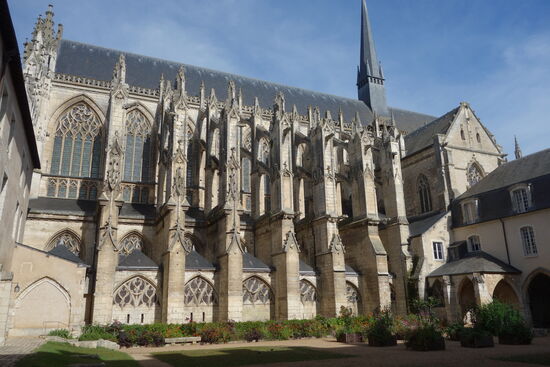 Schon in der romanischen Zeit besitzt die Benediktinerabtei Trinité eine Kirche. Im Jahre 1271 wird das Gebäude von den Mönchen als baufällig beurteilt und ein Neubau wird beschlossen. Ungefähr 1308 entsteht ein neuer Chor.