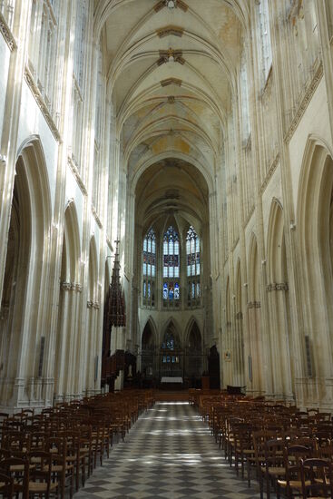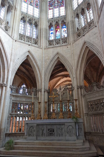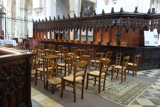 Das Chorgestühl wurde vom Abt Louis de Crevant (1487-1522) in Auftrag gegeben und von seinem Nachfolger Antoine de Crevant (1522-1539) vollendet. Das Chorgestühl wird von musizierenden Engeln überragt, seine Miserikordien sind mit Schnitzereien verziert, die anschauliche Szenen aus dem Alltagsleben und die Arbeiten im Laufe der Monate darstellen. Nur noch die Hälfte der ursprünglichen Chorstühle ist erhalten geblieben: nachdem sie während der Französischen Revolution verkauft wurden, konnten sie 1838 wieder aufgestellt werden.