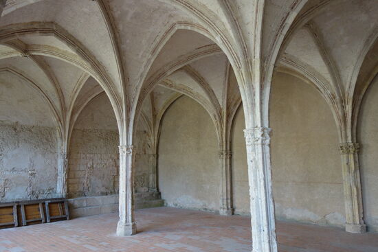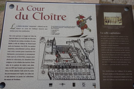 Der Kreuzgang, der Meditation der Mönche vorbehalten, ist ein Teil des Klosters (Latein claustrum, Umzäunung). Er befindet sich im Herzen der Benediktinerabtei. Das Kloster umfasst den Schlafraum und den Speisesaal der Mönche sowie die Gästeunterkunft. Die kreisförmige Küche (wie in Fontevraud) und der Südflügel machen einem noch größeren Gebäude Platz, um im 18. Jahrhundert die mauritischen Benediktinermönche aufzunehmen. Nur der Nordteil der Kreuzgangsgalerie steht heute noch der Kirche entlang. Im Jahre 1907 werden auf Anweisung des Militärs die drei anderen Seiten abgerissen.