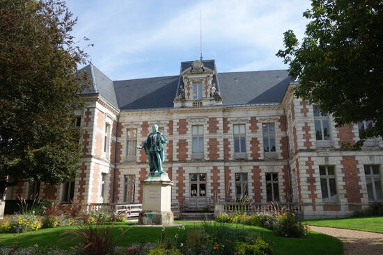 Dieses Gebäude, vom Architekten Edouard Marganne entworfen, wurde von 1866 bis 1868 errichtet, um die Bibliothek, das Museum und den archäologischen Verein unterzubringen. Das Gebäude, das vom Bombenangriff im Juni 1940 verschont bleibt, wird später zum Rathaus. Im Jahre 1953 finden die Sammlungen des Museums neue Ausstellungsräume in der Abtei Trinité. Nach einem Umbau belegt die Bibliothek seit 1986das gesamte Gebäude, während das Rathaus in das ehemalige Lycée Ronsard umzieht.