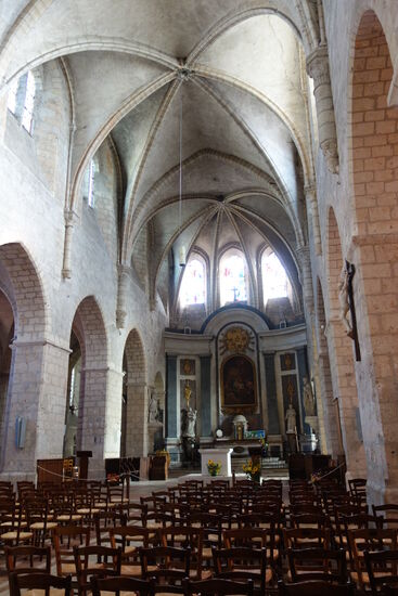 Die Kirche wurde größtenteils im 12. Jahrhundert erbaut und im 13. Jahrhundert fertiggestellt. Ende des 15. Jahrhunderts wurde der alte Chor zerstört. Zu Beginn des 16. Jahrhunderts wurde der heutige Polygonalchor errichtet und das Dach des Nordschiffs durch eine Reihe von Giebeln umgestaltet. Aus dieser Zeit scheint auch das getäfelte Fachwerk zu stammen, das das Kirchenschiff bedeckt. An der Hauptfassade des Kirchenschiffs sind Reste einer Verteidigungsanlage zu sehen, die mit den alten Befestigungsanlagen der Stadt verbunden war. Erhalten sind die hohen Fenster des Kirchenschiffs sowie die kleinen Rundbögen unter diesen Fenstern, die eine Art Triforium bilden. Von den alten Gewölben sind noch die Gewölberahmen sowie eine Reihe skulptierter Elemente erhalten. 1833 wurde eine Gipskolonnade hinzugefügt.
