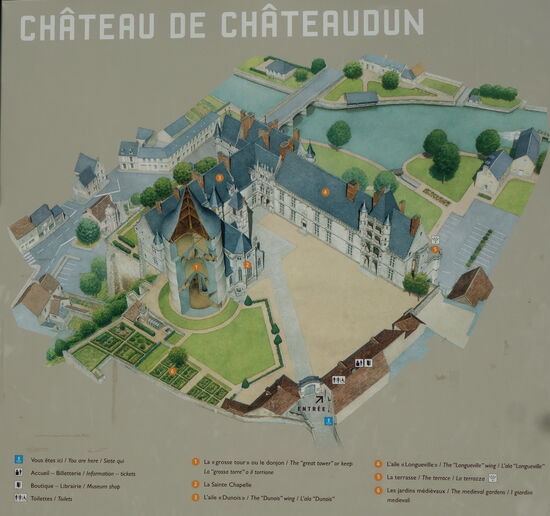 Der auf den Loir blickende Dunois-Flügel wurde in den Jahren 1459 bis 1469 errichtet. Er besitzt drei Stockwerke und zwei Kellergeschosse. Der nördliche Wohntrakt im Erdgeschoss besteht aus mehreren Räumen, von denen einer mit seiner aus Lilien und gekrönten Buchstaben L bestehenden Dekoration an die Aufenthalte Ludwigs XIV. im Schloss in den Jahren 1682 und 1685 erinnert. Eine große Wendeltreppe schließt den Flügel ab; sie ist ein Meilenstein in der Entwicklung der Treppenarchitektur und ähnelt der unter Karl V. gebauten Treppe im Louvre.