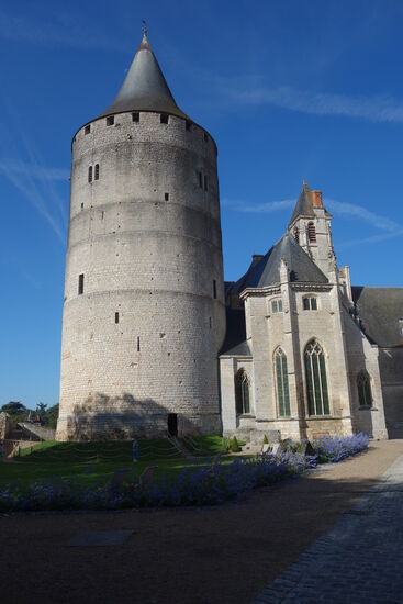 Aus dem 12. Jahrhundert ist der Theobald V. zugeschriebene Donjon erhalten geblieben; er hat einen Durchmesser von 17 m und ist 31 m hoch. Er beherbergt zwei Etagen mit innen untergebrachten Wehrgängen. Dem zinnenbewehrten oberen Teil des Turmes wurde später eine geschwungene Dachkonstruktion aufgesetzt. Der Eingang befand sich 10 m über dem Erdboden und führte zu einem Saal im Obergeschoss; in das Untergeschoss gelangte man durch eine Öffnung in dessen Gewölbe.