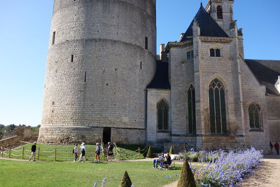 An den Donjon schließt sich die wieder aufgebaute Kapelle aus den Jahren 1451 bis 1493 an. Das Gebäude umfasst zwei übereinanderliegende Kapellen für Herrschaft und Bedienstete sowie einen eckigen Turm. Die untere Kapelle besteht aus einem durch große Fenster mit kleinen Säulen durchbrochenen Chor und einem Schiff mit Rippengewölbe mit drei Laibungen. Das Maßwerk ihrer Fenster zeigt den Flamboyantstil. Bis zur Revolution bewahrte man in der Sainte-Chapelle eine Passionsreliquie auf: ein Stück vom Heiligen Kreuz, das Dunois im Jahr 1456 vom König geschenkt wurde. Von der ehemals reichen Dekoration sind nur noch etwa 15 Statuen aus den Ateliers de la Loire des 15. Jahrhunderts erhalten. Dargestellt sind Heilige, die von der Familie Dunois besonders verehrt wurden. Eine Wandmalerei von 1468 zeigt das Jüngste Gericht.