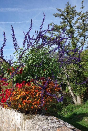 Wir beginnen an der Brücke über die Ozanne, die wie alle offziellen Punkte der Stadt mit sehr schönen Blumenarrangements geschmückt ist.