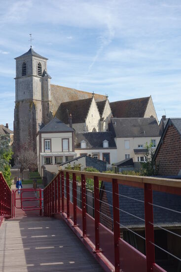 Die Überquerung des Ozanne an dieser Stelle in Richtung Maine erfolgte früher über eine Furt, dann über eine Holzbrücke. Gegen Ende des 11. Jahrhunderts, während der Befestigung der Stadt, wurde sie durch ein Tor und zwei Türme kontrolliert, wo bei der Wareneinfuhr Zölle erhoben wurden. Nach der Abschaffung der Maut im Jahr 1744 wurden das Tor und die Türme teilweise abgerissen, um die Durchfahrt zu erleichtern. Die Spuren der Verbreiterung sind unter den Bögen der heutigen Brücke deutlich sichtbar.