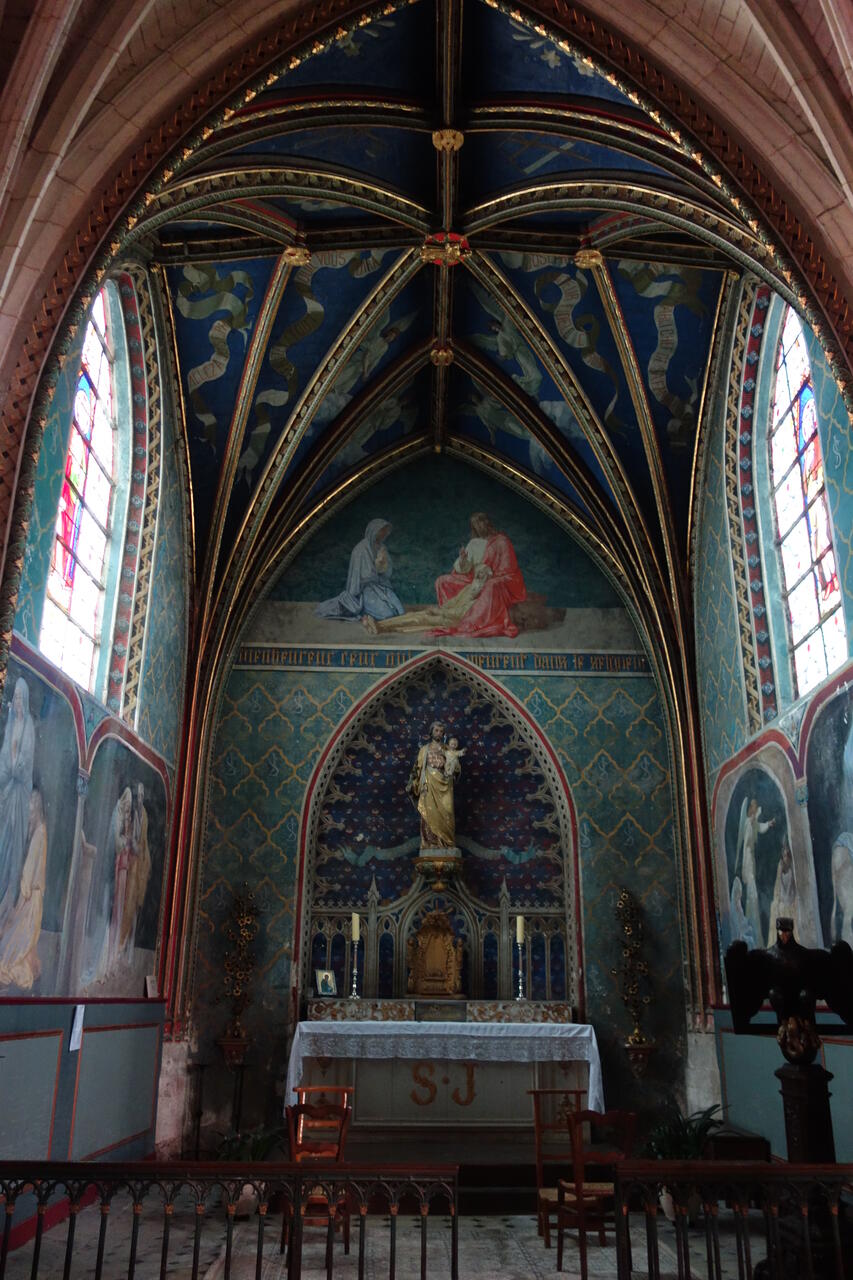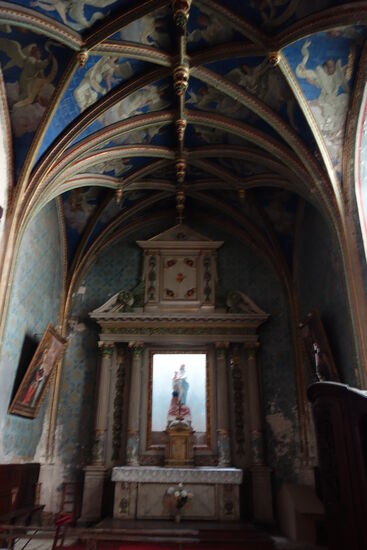 An der Nordseite befinden sich zwei gotische Kapellen mit interessanten Deckenmalereien.