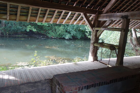 Wieder an der Ozanne angelangt, können wir noch in ein Waschhaus hineinschauen, bevor wir den Rundgang an der Piau-Brücke beenden.