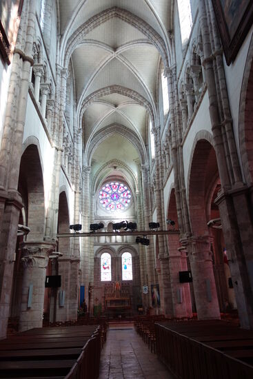 Das Gebäude besteht aus drei Schiffen, die in sieben Joche unterteilt sind und von Strebepfeilern flankiert werden.