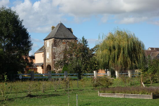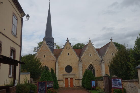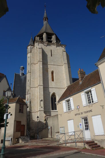 Die Kirche Notre Dame liegt direkt gegenüber. Sie stammt aus dem 12. Jahrhundert, was den Hauptteil betrifft, der aus dem rechteckigen Kirchenschiff und dem Chor mit einer halbkreisförmigen Apsis besteht, und aus dem 16. Jahrhundert, was das südliche Seitenschiff mit einer Renaissancetür betrifft. Die westliche Flamboyant-Rose stammt aus dem Ende des 15. Jahrhunderts. Zylindrischer Turm an der Nordwestecke der Kirche. Achteckiger Glockenturm mit hoher Turmspitze.