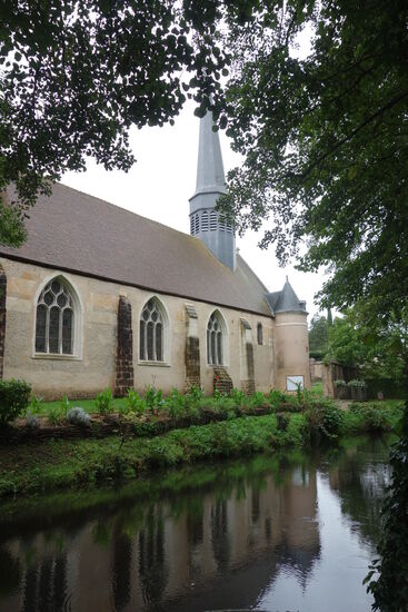 Das Schloss von Villebon aus dem 14. Jh. ist ein atemberaubendes Ensemble mit seinem Wassergraben, dem herrlichen Gelände mit seiner langen, weitläufigen Parklandschaft voller Hirsche, seinen Kanälen, Seen und der Renaissance-Stiftskirche. - so die Broschüre deren Abb. uns animierte hierherzukommen.