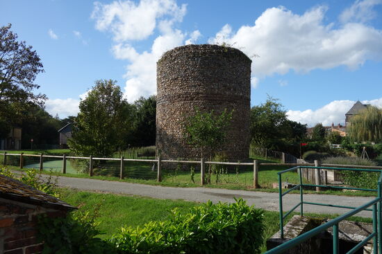 Während des 100 jähr. Krieges zerstört, wurde sie 1493 nach Plänen von Florentin Girard de Barenton wieder aufgebaut und im Laufe der Jahrhunderte, von seinen jeweiligen Besitzern teilweise zerstört. Der Donjon mit schönem Tor, flankiert von 2 Türmen, einer davon mit einer Galerie verbunden, sowie ein isolierter Eckturm sind noch erhalten.