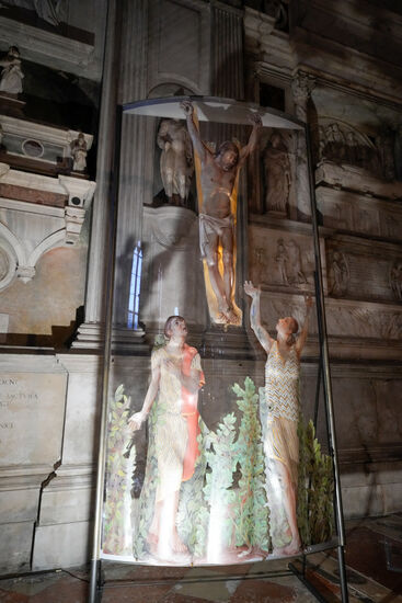 Es gibt in diesem großen Gebäude mehrere Seitenaltare, in den die sterblichen Reste der Dogen teilweise im Boden eingelassen sind.