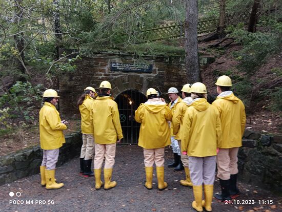 Es gibt verschiedene Möglichkeiten das Bergwerk zu besichtigen. Wir haben uns für die Abenteuertour Rathstiefer Stollen entschieden. Treffen ist um zehn Uhr. Nach einer kurzen Begrüßung werden wir mit Helm, Latzhose und Gummistiefel ausgestattet .