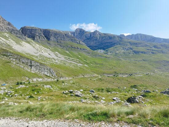 Herrliche Fahrt durch und über das Durmitor Gebirge. Extrem lange Strecke über 1400 Meter hoch bis ca. 1900 Meter. Wahnsinns Landschaften und Berge.