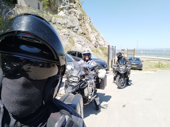 Kommandozentrale, um die bin ich echt froh. Auf dem großen Tablett, das die auf dem Tankrucksack befestigt ist, läuft Calimoto, die Beste Motorrad Navigations Software die ich kenne. Als Backup lasse ich noch mein Garmin mitlaufen, immer das abendliche Ziel auf kurzer Strecke vor Augen.