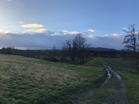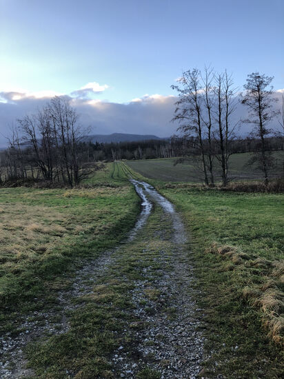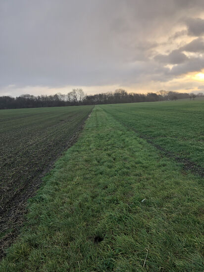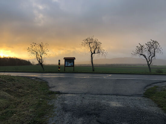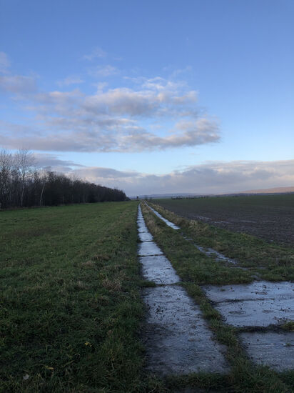 Zwischen Wiedelah und Abbenrode überraschte mich hin und wieder ein Schauer und ich musste bereits kleinere Druckstellen am Fuß zur Blasenprophylaxe abkleben. Es ging weiter über Wege und Felder. In der Ferne meine ich den Brocken schon erspäht zu haben.