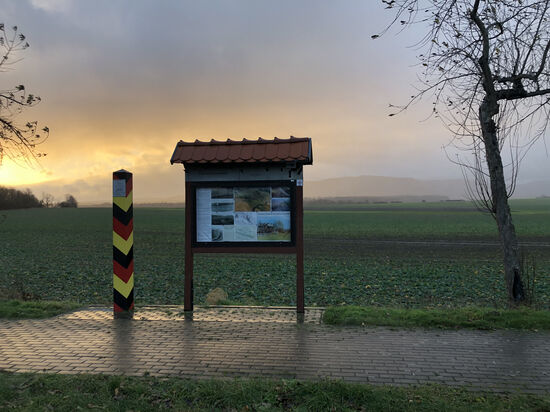 Hier kam ich am Ende des Dorfes auf den ausgeschilderten "Harzer Grenzweg" der als grünes Band direkt auf verschwiegenen Grenzpfaden oder dem früheren "Kolonnenweg" entlang der innerdeutschen Grenze verläuft. Dieser Weg war gut mit entsprechenden Wegweisern ausgeschildert.
